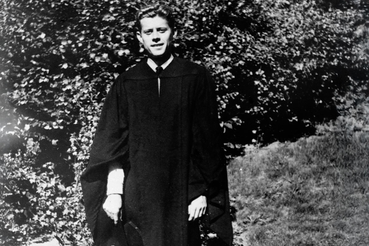 A look at John F. Kennedy's academic record suggests a young man who benefited from being the son of a wealthy and powerful politician. Focused on sports and social activities at the exclusive Choate preparatory school in Connecticut, Kennedy flunked French and Latin as a freshman, and was briefly expelled for his part in a planned prank as a senior.